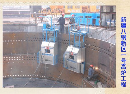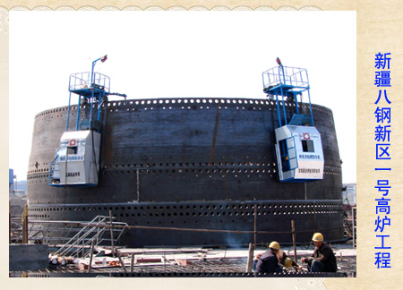 新疆八一鋼廠新1號、2號、3號高爐工程位于新疆烏魯木齊八鋼新區,三座均為2500立方米高爐,每座年產生鐵200萬噸。從2006年底開工至2011年7月底全部投產,中國二冶承擔三座高爐主體項目施工。