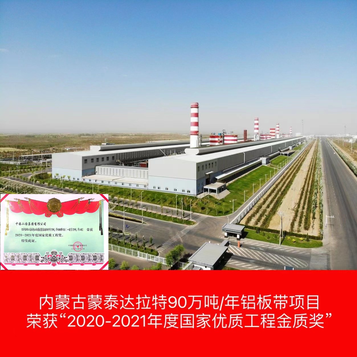 內蒙古蒙泰達拉特90萬噸/年鋁板帶項目(一期50萬噸電解鋁工程)屬于內蒙古積極響應國家循環經濟資源綜合利用示范項目,項目采用500KA預焙陽極鋁電解槽及配套的煙氣干法凈化技術及與之配套的供電整流、鑄造、電解煙氣凈化等工程。獲得2020-2021年度國家優質工程金質獎”。